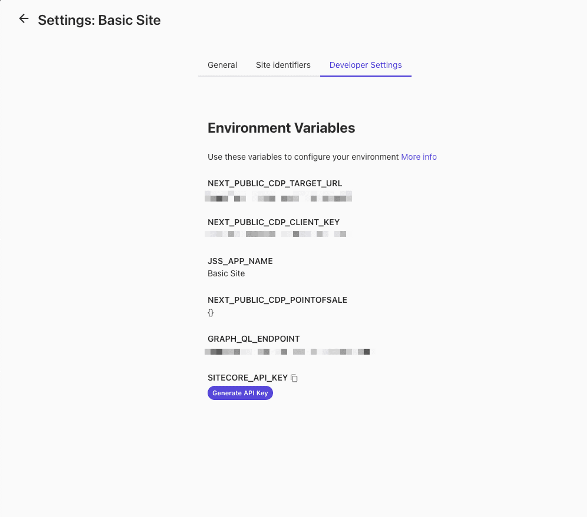 SITECORE_API_KEY,JSS_APP_NAME, andGRAPH_QL_ENDPOINTvalues – you'll need it for the next step.Next, add the