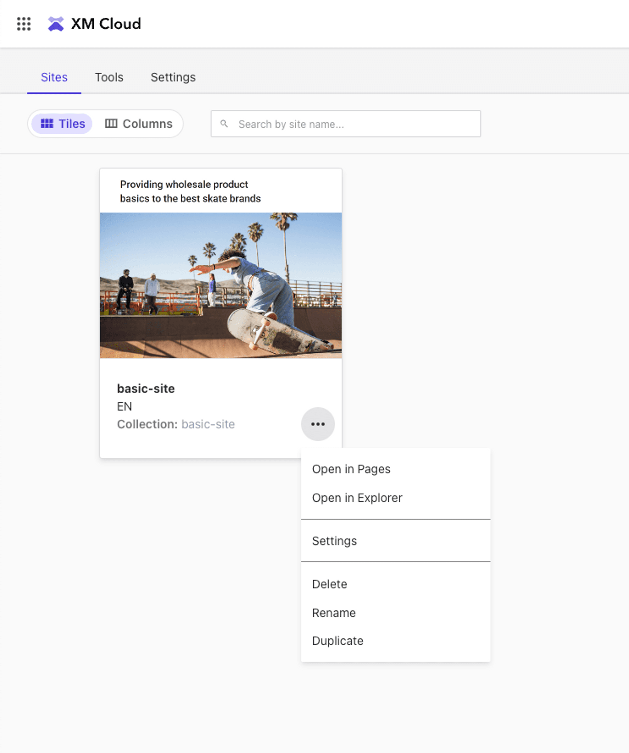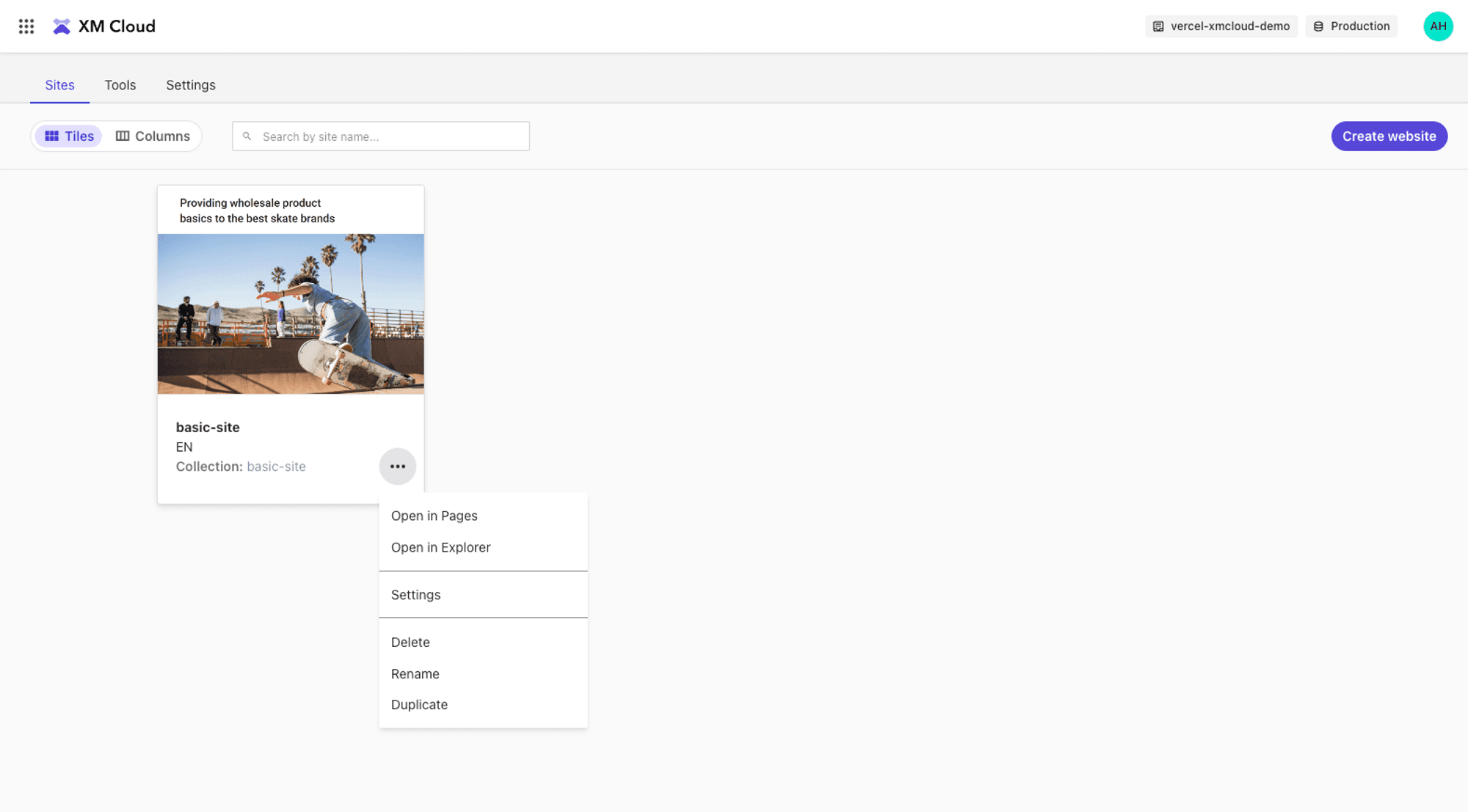 terminalnpx create-next-app --example cms-sitecore-xmcloudNext, navigate to your newly created XM Cloud site under Sites and select Settings.