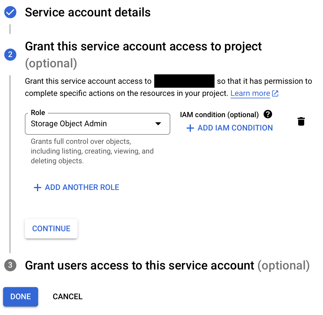 - Paste in the IAM Principal copied from the pool details page in the Service account users role field.