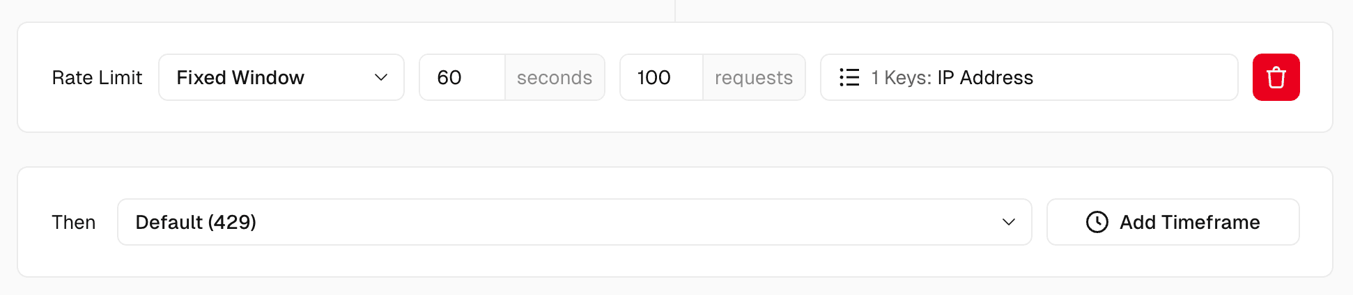 - Update the Time Window field as needed (defaults to 60s) and the Request Limit field as needed (defaults to 100 requests)