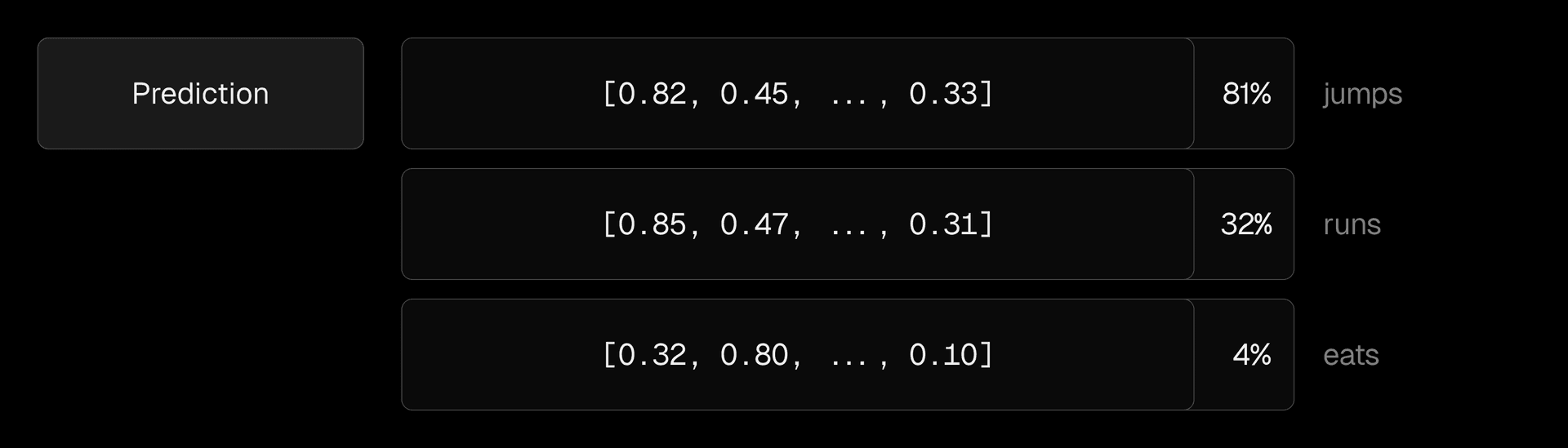 Each token is embedded as a high-dimensional vector.