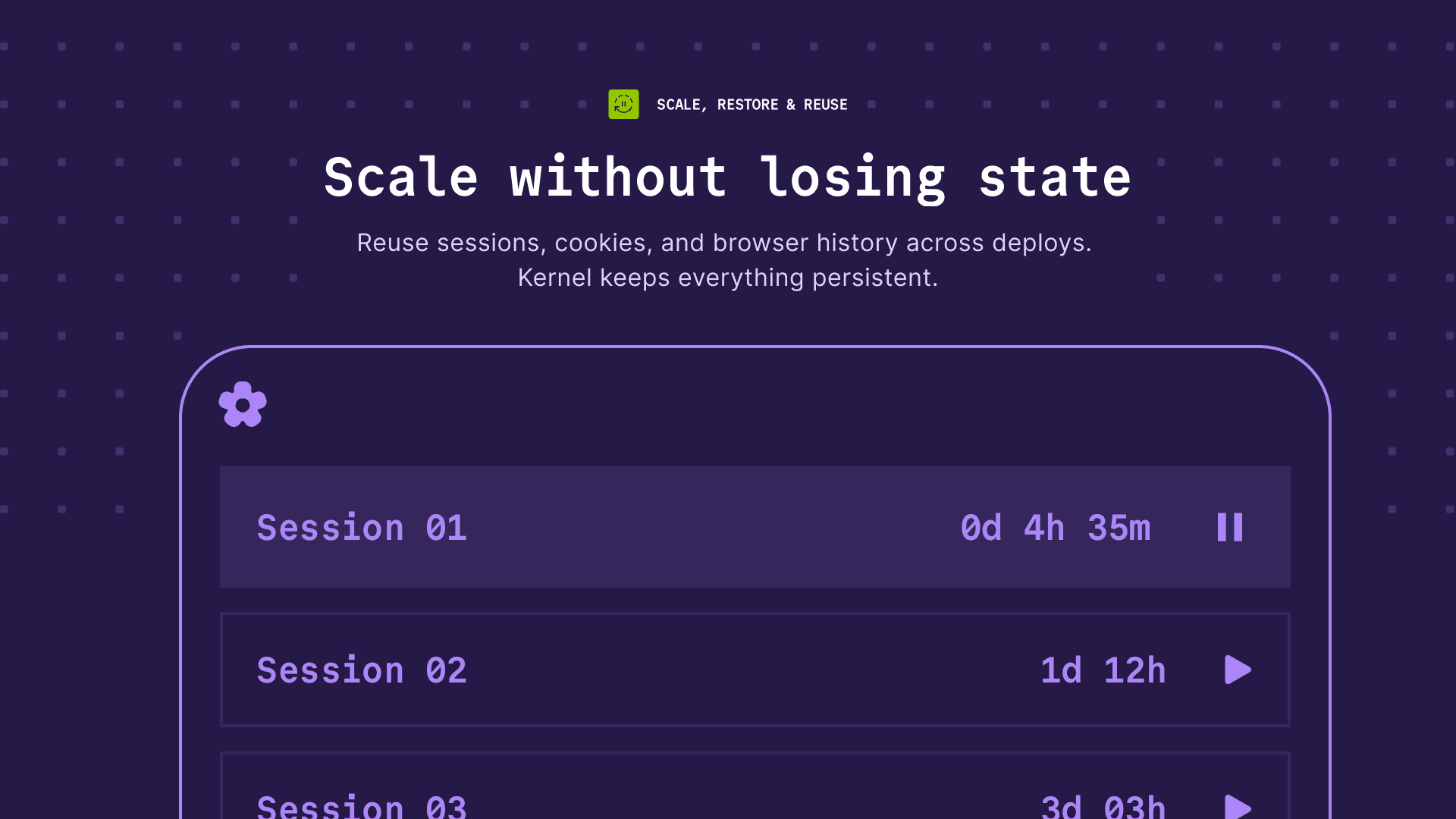 Kernel works out of the box with every major agent and automation framework whether you're using Browser Use, Stagehand, Playwright, Puppeteer, or Computer Use via OpenAI, Anthropic, or Gemini. Instantly deploy and scale any of these workloads on Vercel using Kernel's browsers.