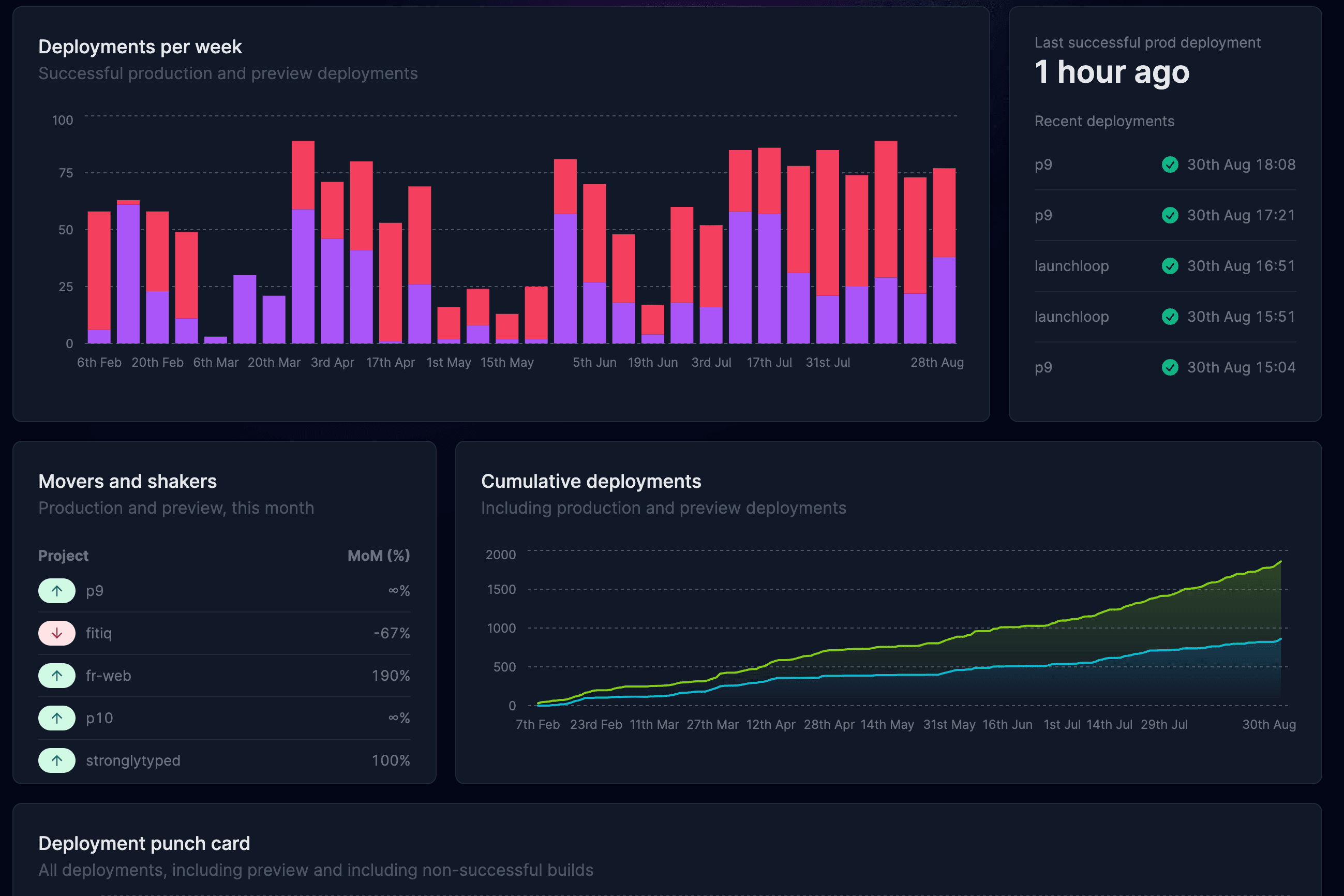 Blazing-fast, beautiful Vercel deployment dashboards.