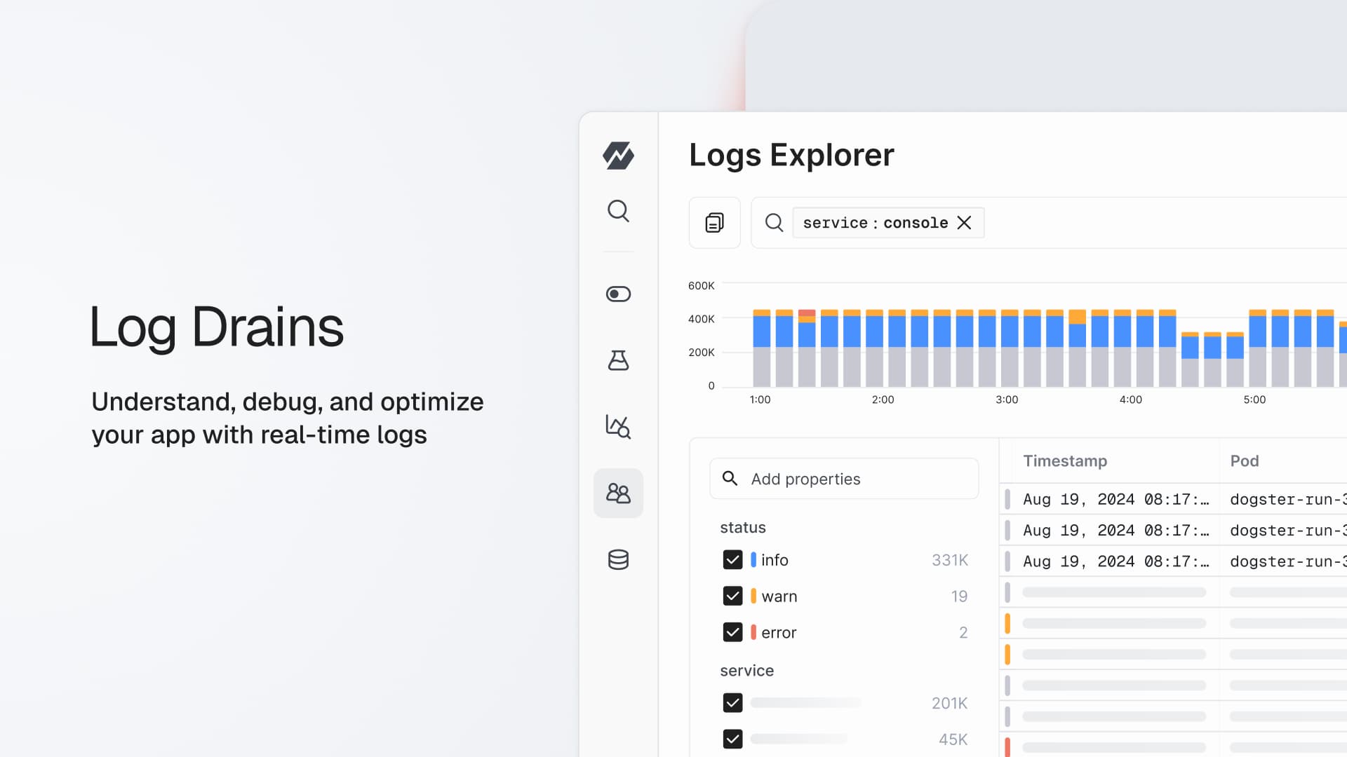 - Log Drains — Use real-time logs and infrastructure analytics to understand, debug, and optimize your applications.