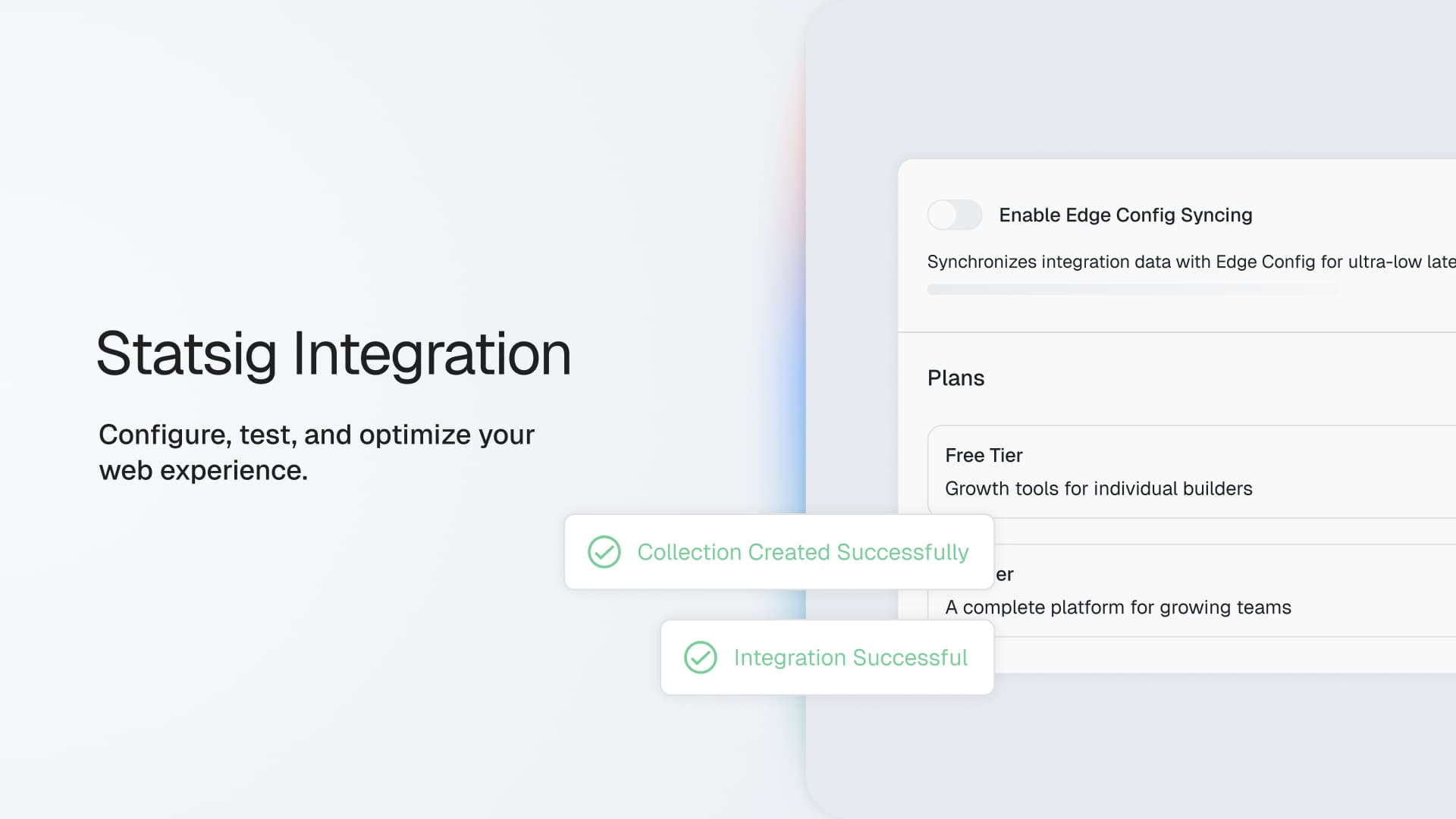 Link Existing Statsig Account: Installs the Statsig Connect Integration. Connects your Vercel project to your existing Statsig account to perform edge config syncing.