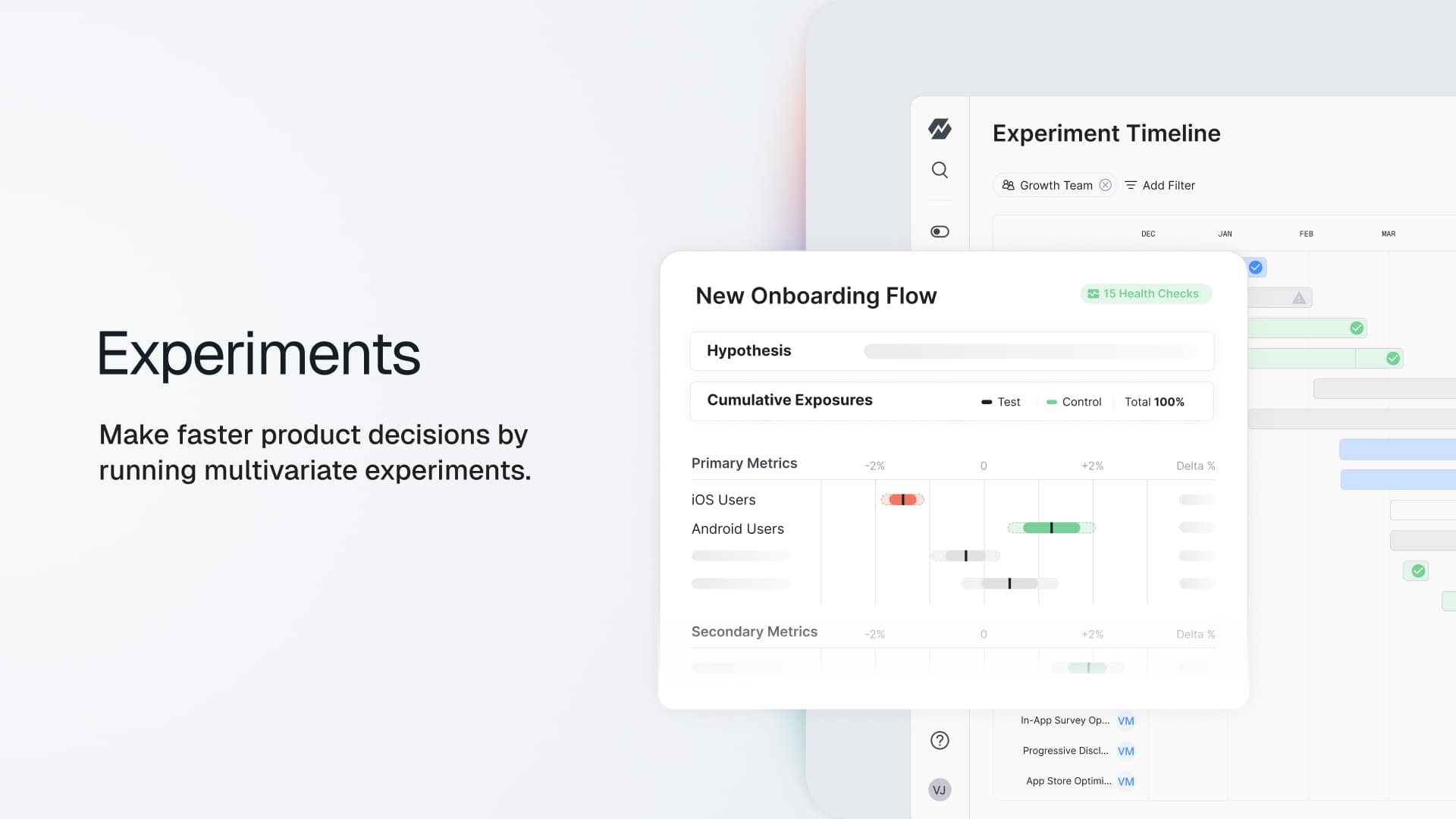 - Experiments — Run controlled tests with exposure tracking, metric attachment, and advanced stats for confident decisions at scale.